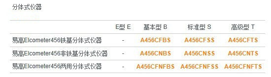 易高Elcometer456儀器分為4個類型:E型、B(基本型)、S(標準型)、T(高級型),從最初的易高456E型到現在的456T型,儀器功能不斷增加,易高456T型帶有記憶、字母數字組合記錄數據批次和藍牙傳輸功能。