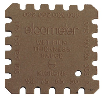 將濕膜梳垂直放置,接觸到基體。保持原地等待幾秒鐘,直到梳齒變濕。拿開濕膜梳。濕膜厚度在“含漆”或“濕”齒最大值和“不含漆”或“干”齒最小值之間。
